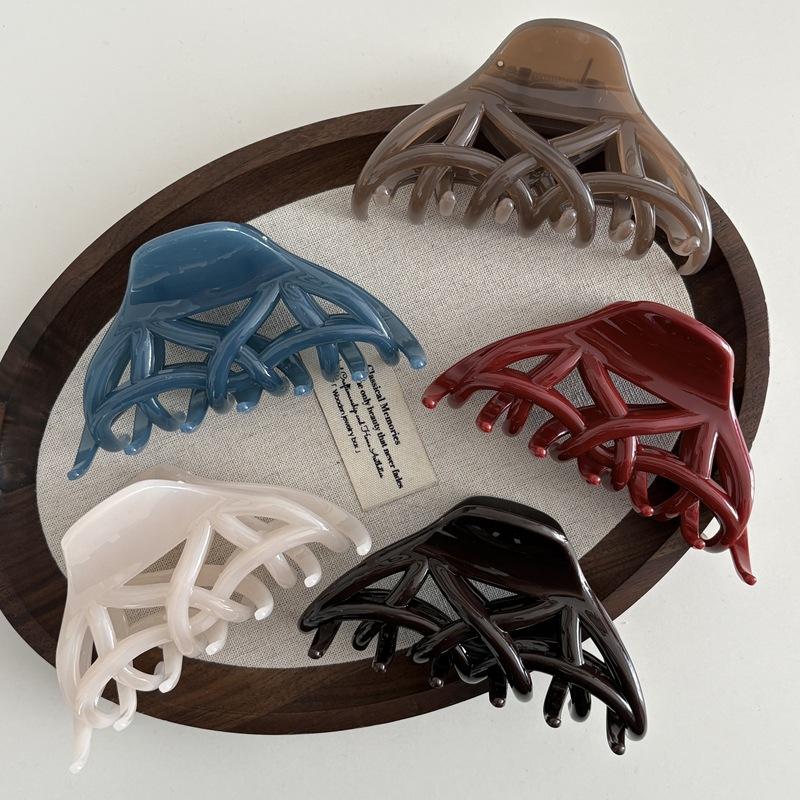 Pince à cheveux triangulaire creuse en acrylique couleur unie pour femme, style requin, pour bal de promo et mode