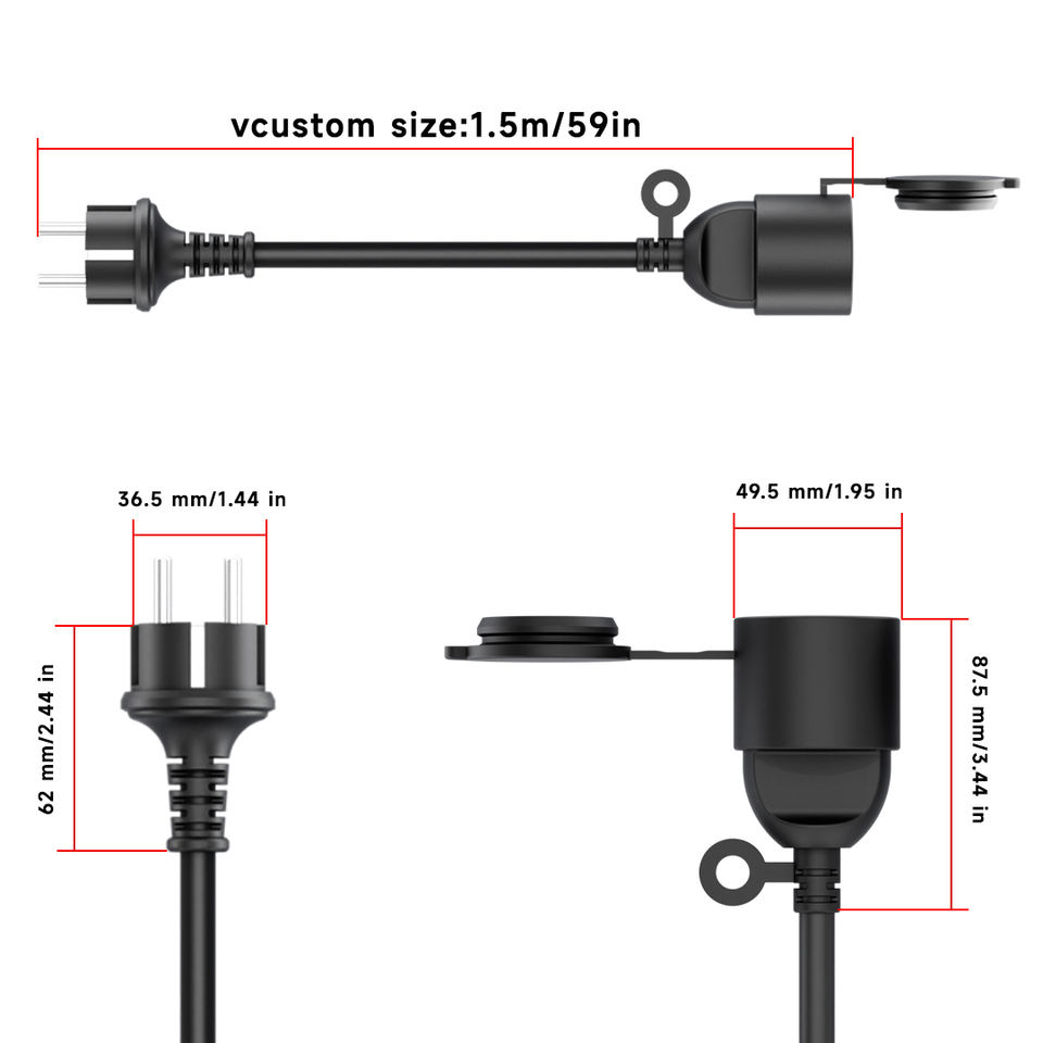 Prise de courant industrielle standard française mâle femelle IP44 3*1.0mm 2/3*1.50mm2 rallonge en cuivre avec couvercle étanche