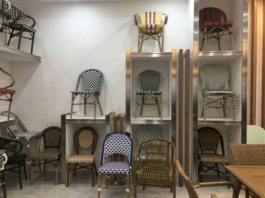 Nom du produit:Chaise bistro en rotin et aluminium, style français.