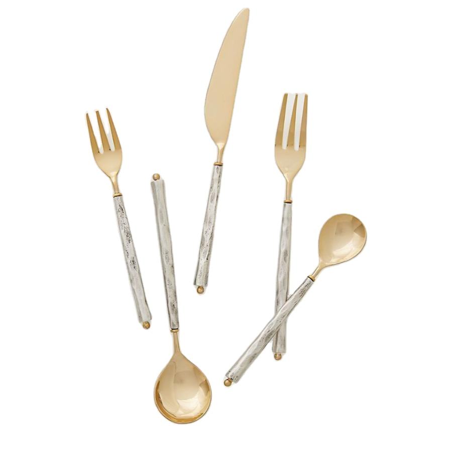 Ensemble de couverts de style français, 5 pièces, manches argentés, ensembles de couverts de luxe pour la table, la fête, la salle à manger, compatibles lave-vaisselle