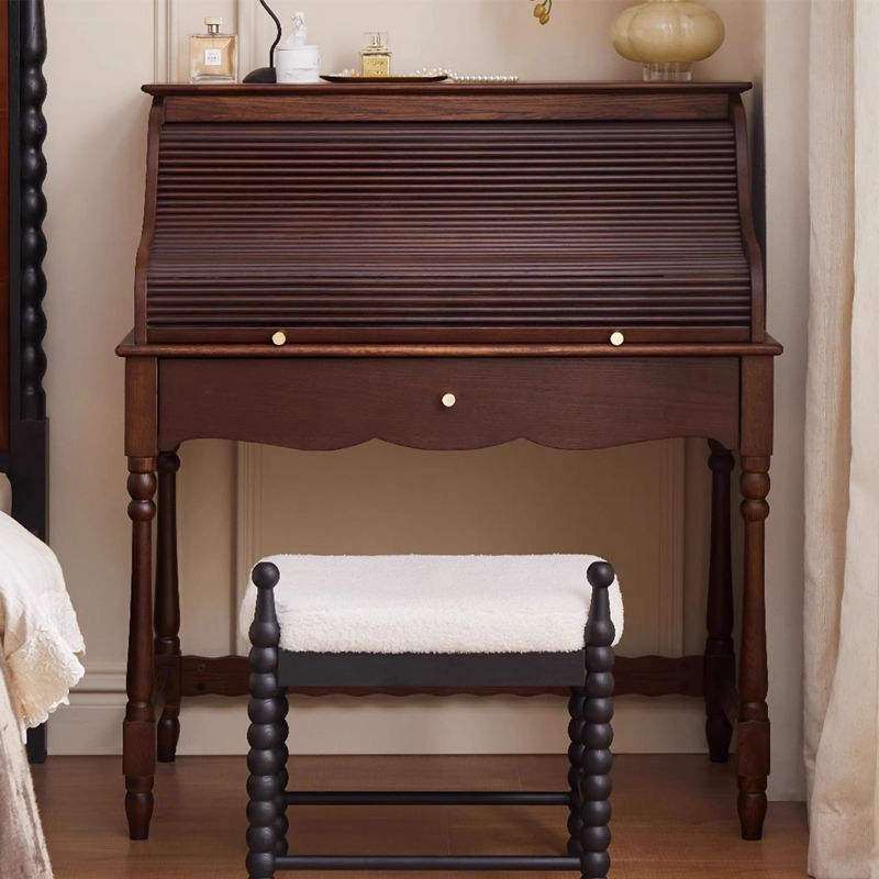 Coiffeuse de style français en bois massif, design rétro, avec tiroir de rangement, format étroit pour chambre à coucher