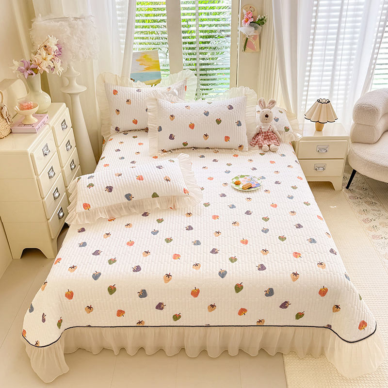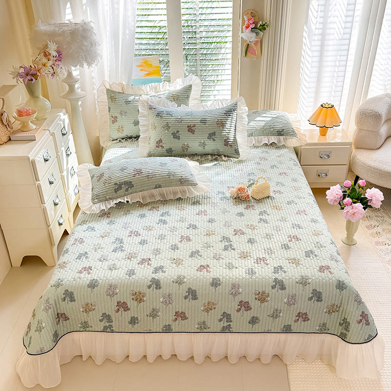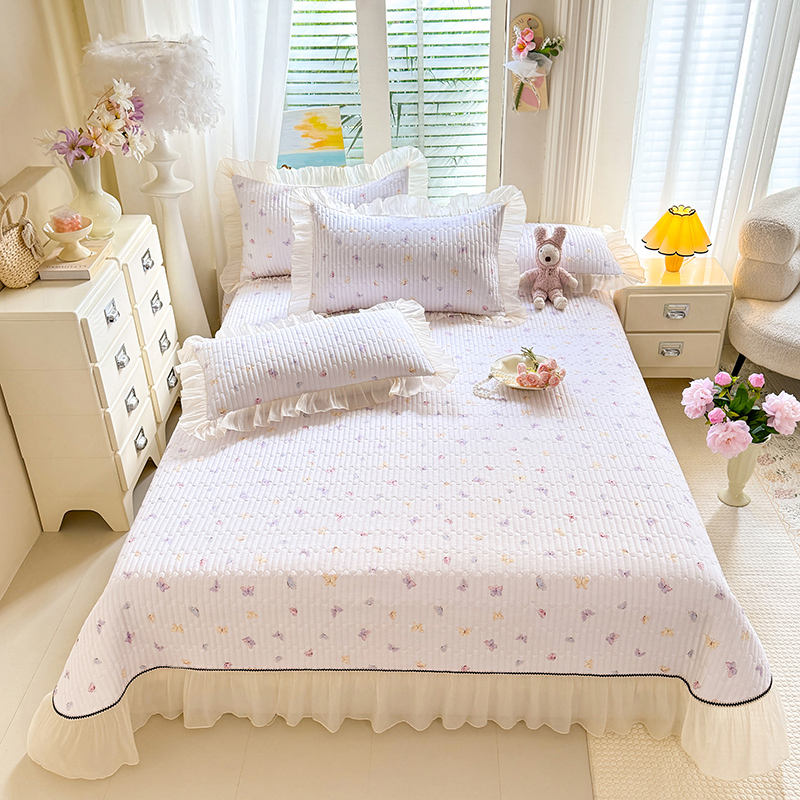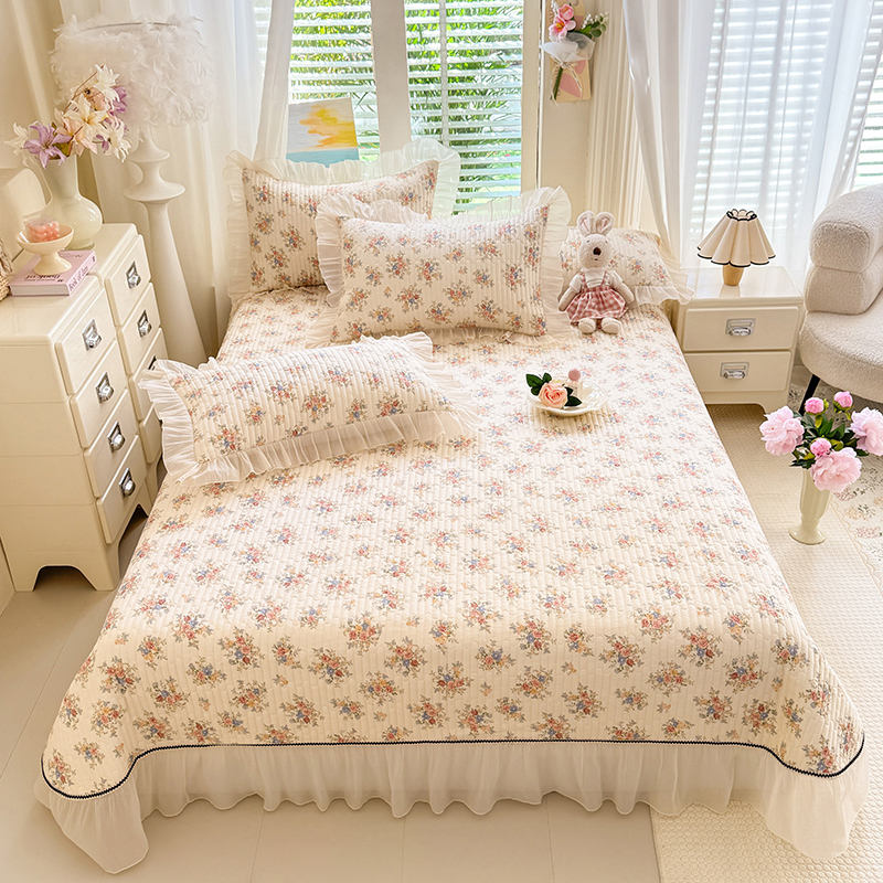 Ensemble de literie matelassé à fleurs de style français, couvre-lit en coton à volants en dentelle