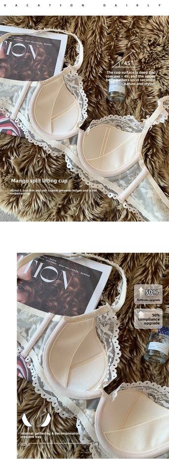 Style français Sexy dentelle Bikini ensemble mince en acier doux anneau soutien-gorge grand rassembler petite poitrine bretelles ajustées solide motif tasse