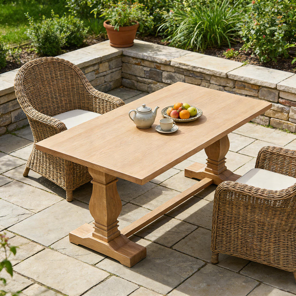 Table de banquet rectangulaire rustique en bois massif de style français pour événements en plein air, location de mariage, dîner, ferme