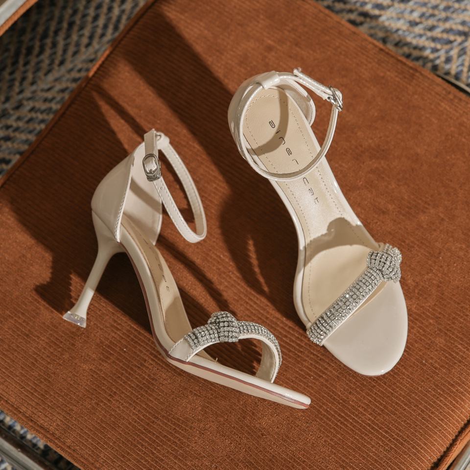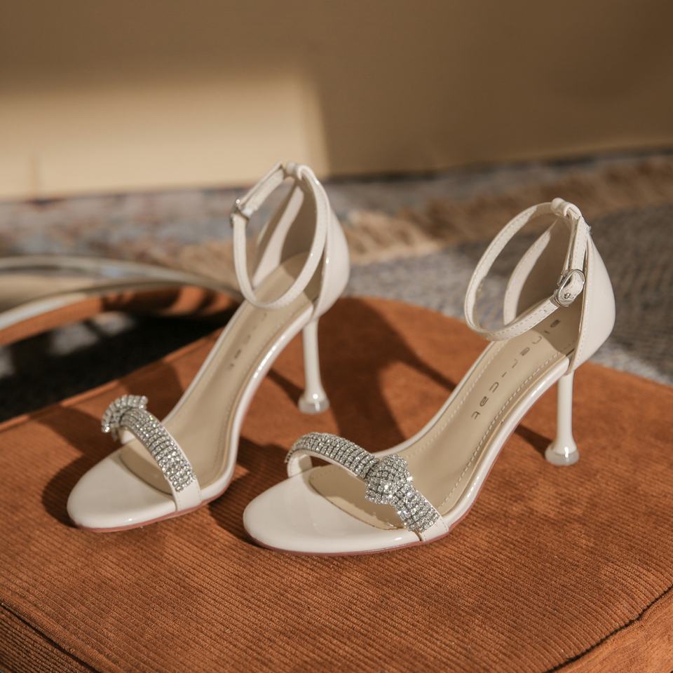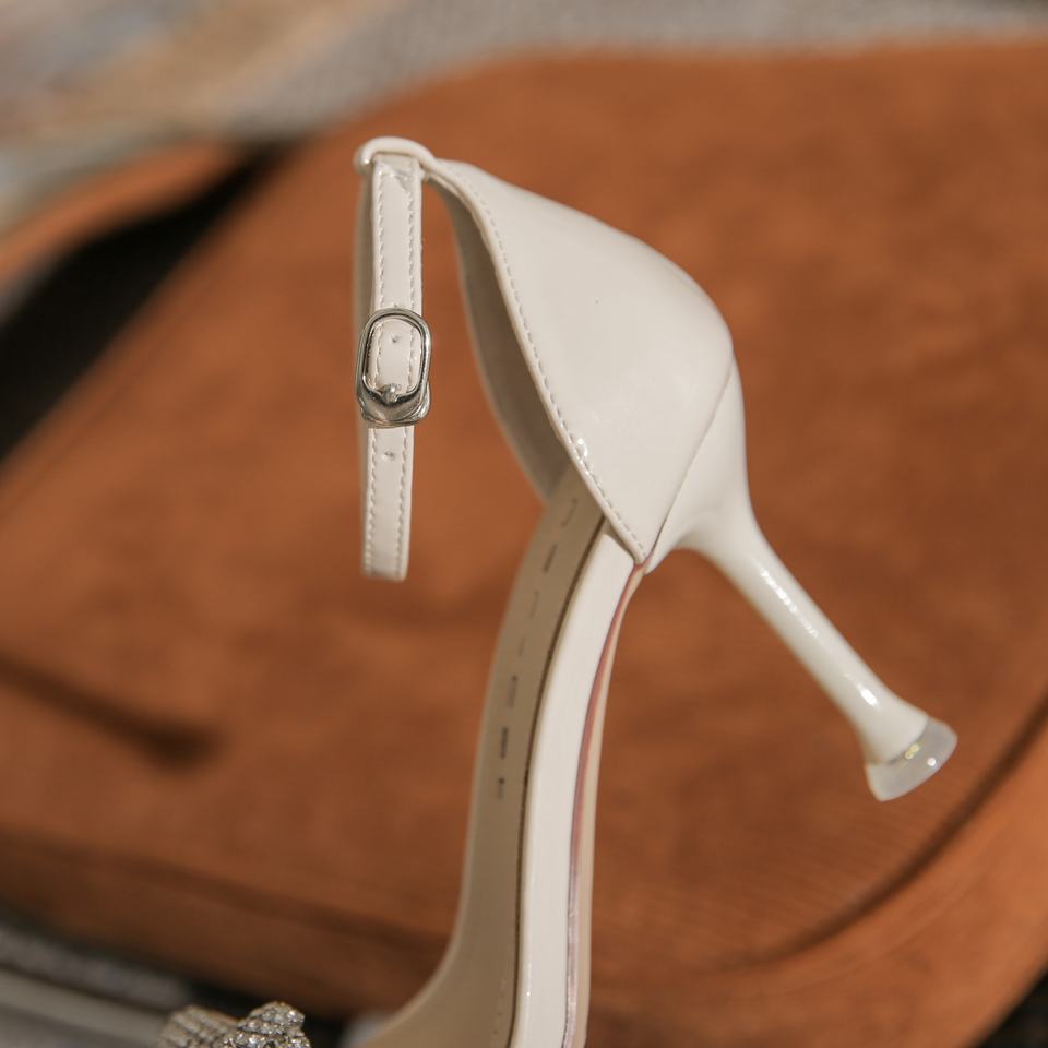 Chaussures à talons hauts pour jeune femme, style français, légères, confortables, féminines, à bout ouvert, à semelle fine, talon aiguille, avec strass authentiques