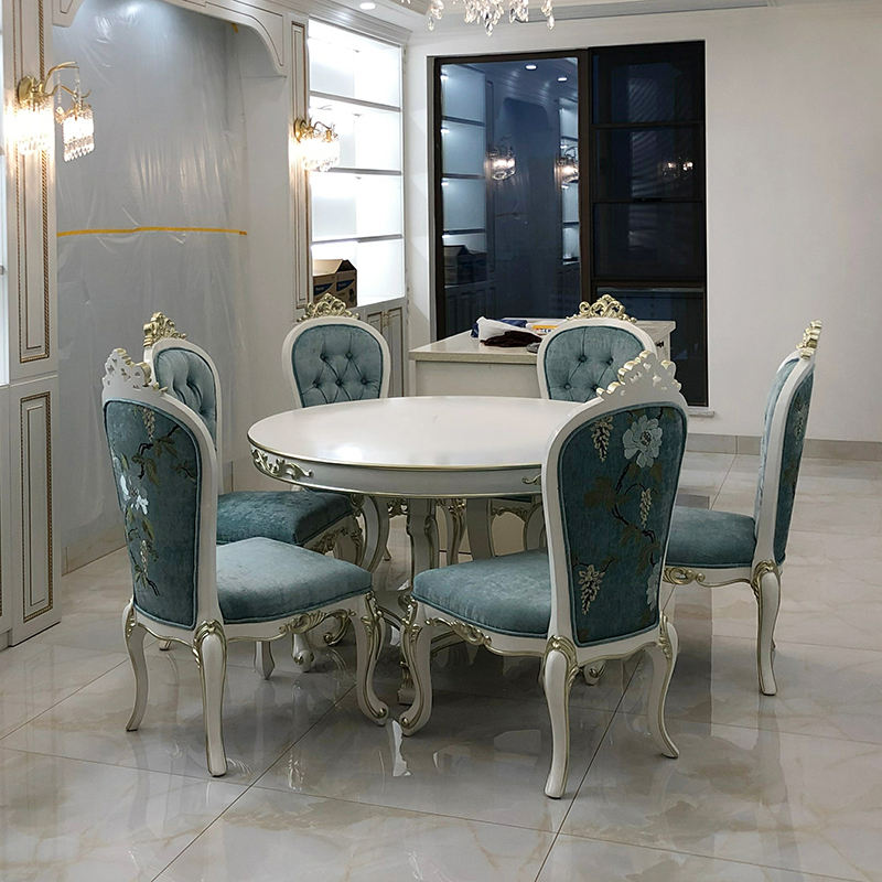 Ensemble table et chaises de salle à manger ronde en bois massif français palais européen table ronde néoclassique sculptée de luxe