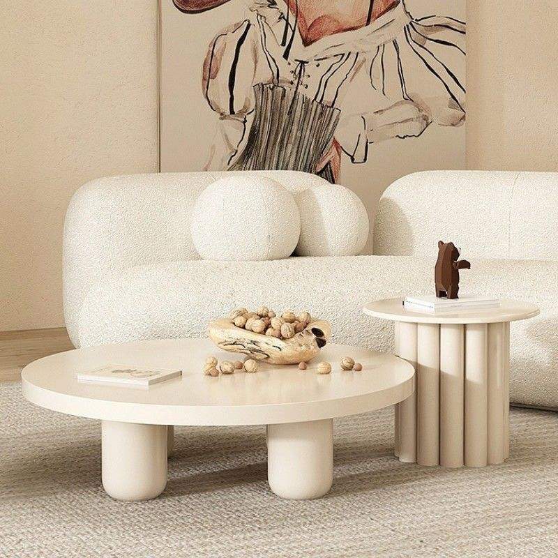 Table basse tendance de style français en panneau de chêne, tons crème, style nordique, pour salon, petit appartement, style Wabi-sabi