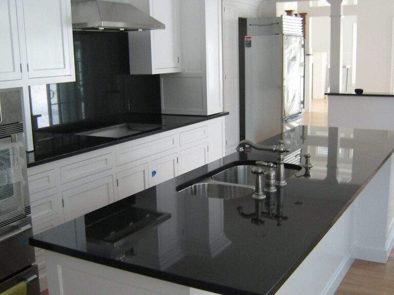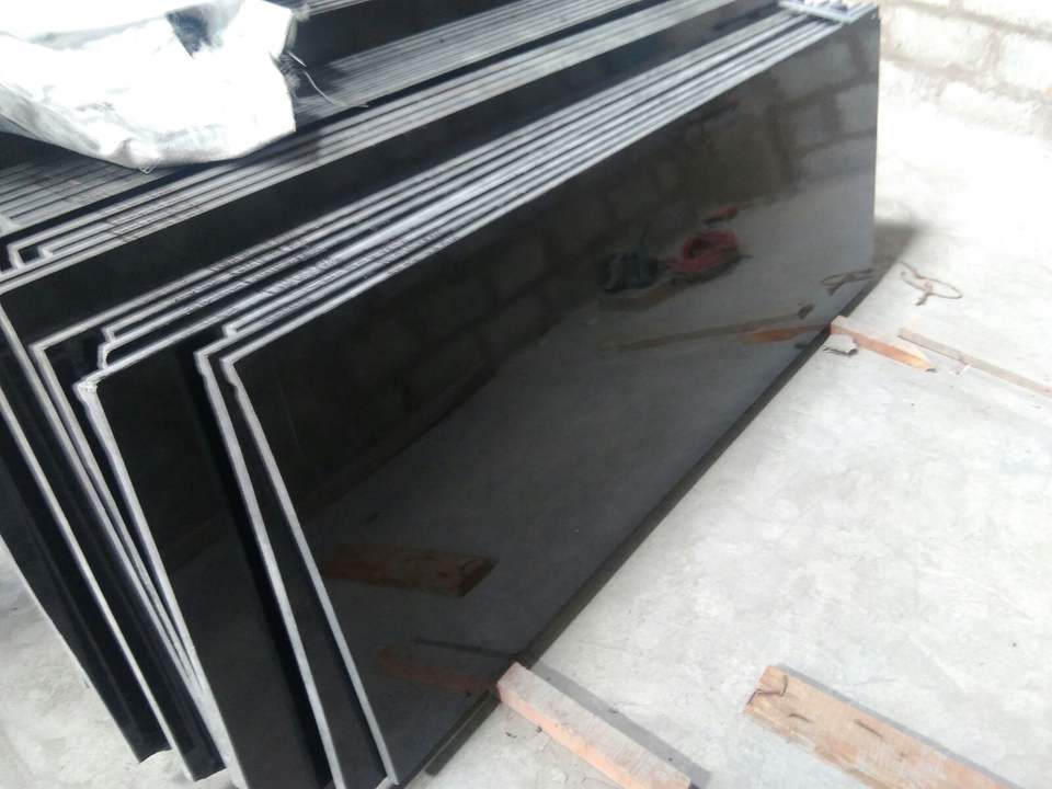 Grandes dalles de granit noir absolu frais, design moderne, écologiques, durables et polies