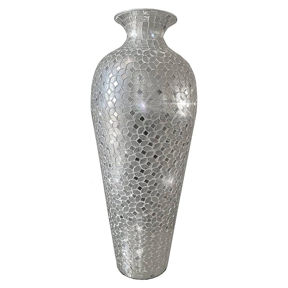 Arrivée fraîche Design Antique rond en aluminium plaqué argent Vase à fleurs décor à la maison Vases en métal faits à la main pour la maison