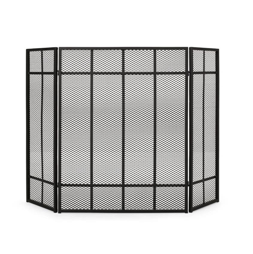 Nouvel Arrivage : Paravent de Cheminée Plat à Panneau Unique en Fer Forgé avec Cadre en Métal et Protection Anti-Étincelles