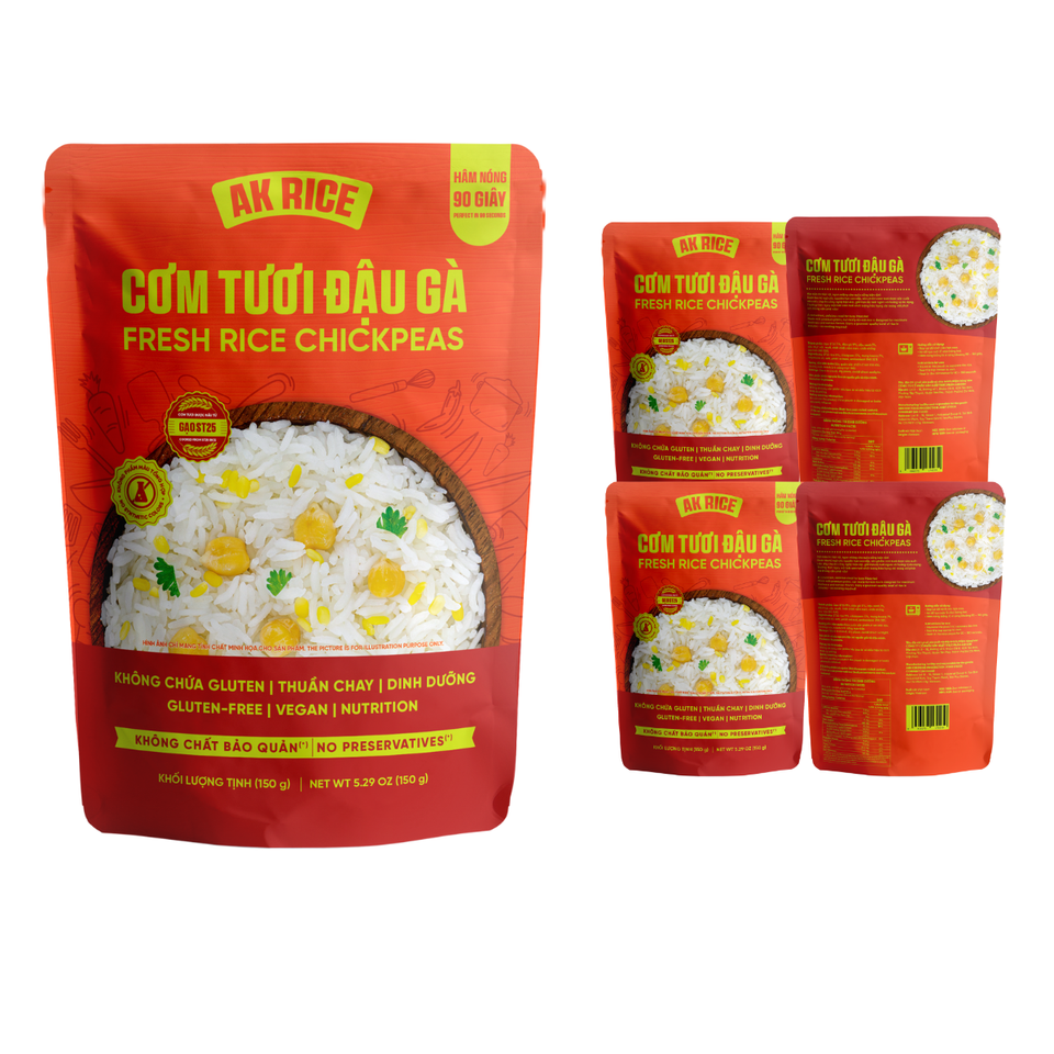 Riz pré-cuit frais et rapide, repas micro-ondables, nourriture asiatique végétalienne, riz instantané, repas aux pois chiches, substitut de repas du Vietnam, riz ST25