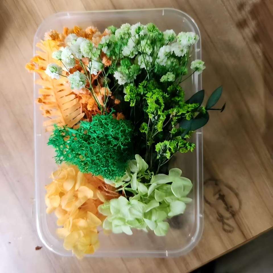 Kit de fleurs séchées vertes fraîches, feuillage et fleurs préservés en boîte pour la décoration de la maison, projets d'artisanat DIY, projets artistiques DIY, artisanat miniature