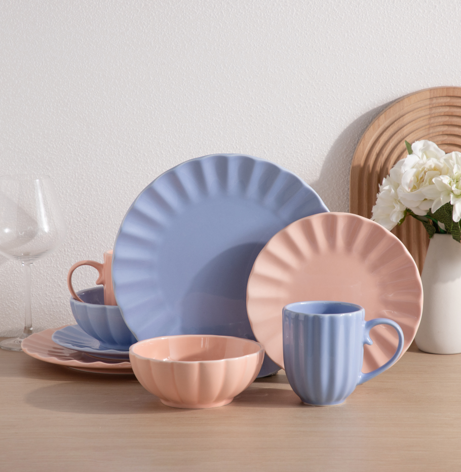Service de table en céramique rose et bleu motif macaron, assiettes, bols et tasses pour la cuisine domestique, haute qualité, logo personnalisé