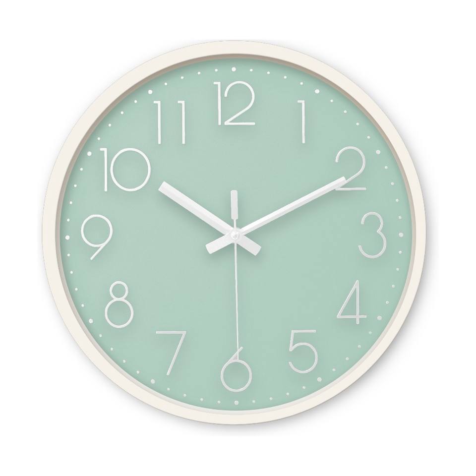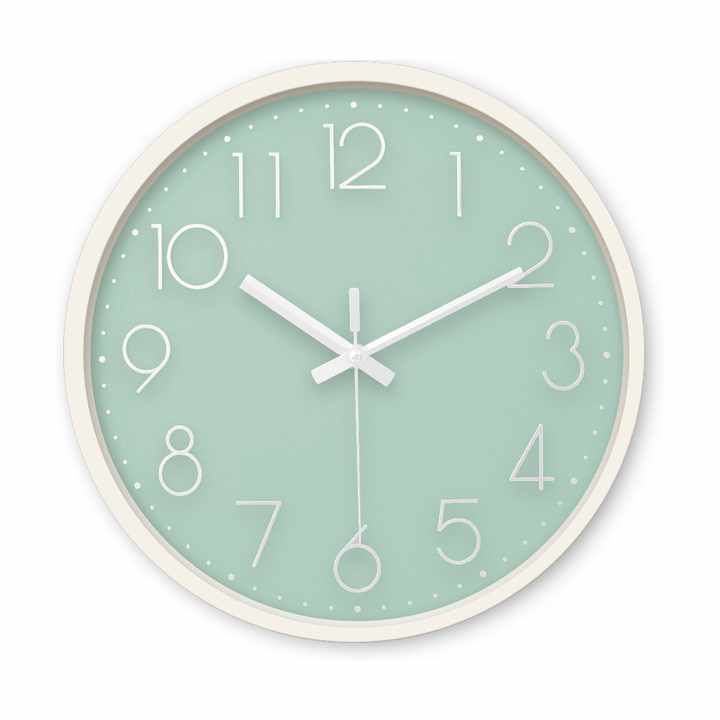 Horloge murale ronde en quartz vert menthe fraîche de 12 pouces, couleur pastel, cadran 3D, lecture claire, mouvement silencieux, pour cuisine et salle à manger