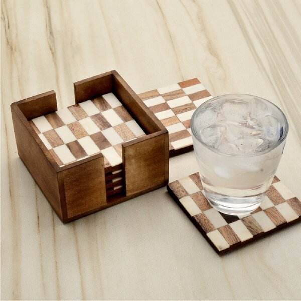 Dessous de verre en bois de noyer naturel frais avec conception à carreaux en verre pour mariage à la maison ou événements Table 2025 Inde
