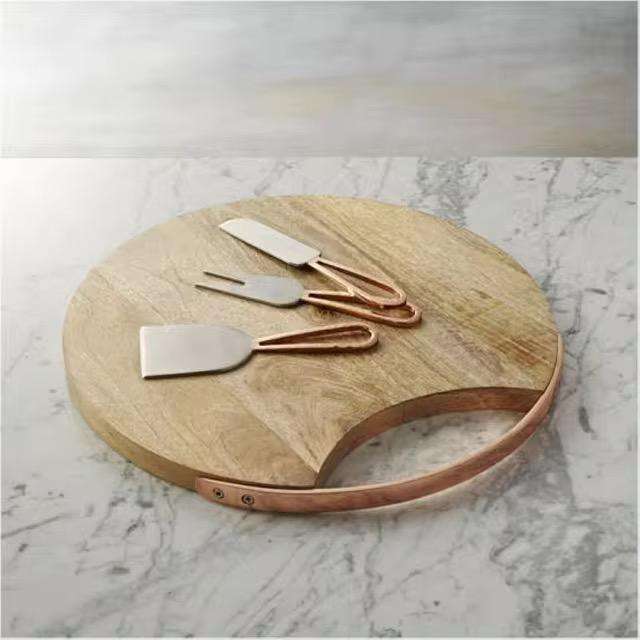 Planche à découper en bois naturel frais avec manche en métal Planche à fromage pour viande et fruits Couverts personnalisés Articles ménagers Légumes/Fromage