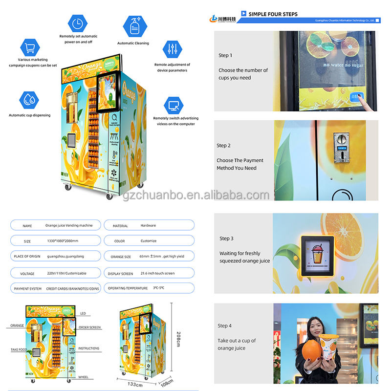 Distributeur automatique de jus d'orange frais Chuanbo Technology, paiement par carte de crédit, livraison express de jus de fruits dans les centres commerciaux et parcs