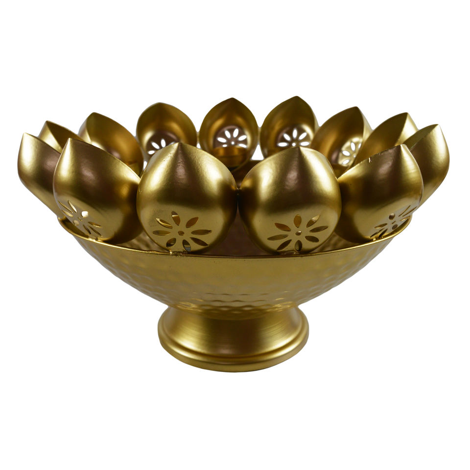 Bol de qualité fraîche avec finition de couleur dorée Design Flower Design Bol décoratif Bol de service en métal de fer de qualité