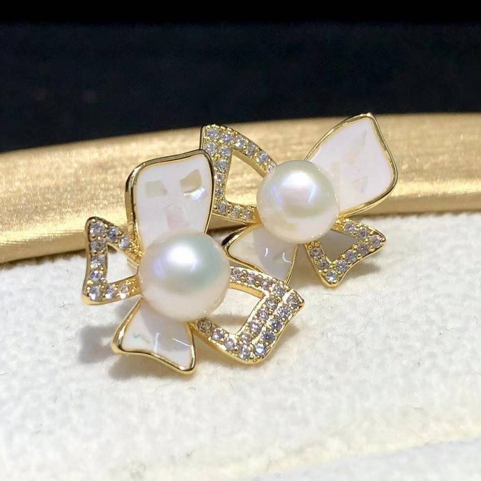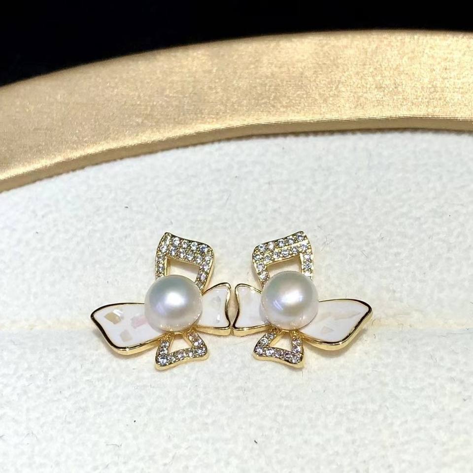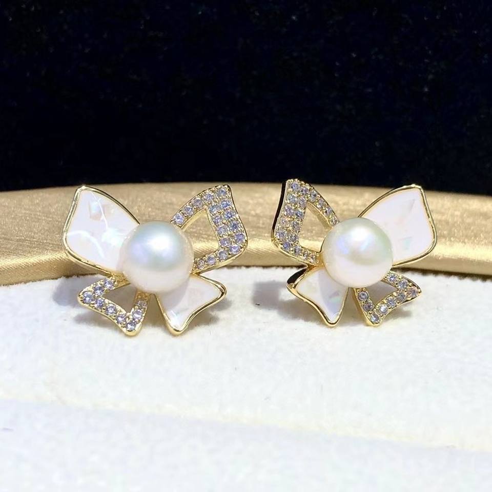 Boucles d'oreilles en or 14 carats et argent pur S925, style rural frais, perles d'eau douce injectées, design nœud fait main