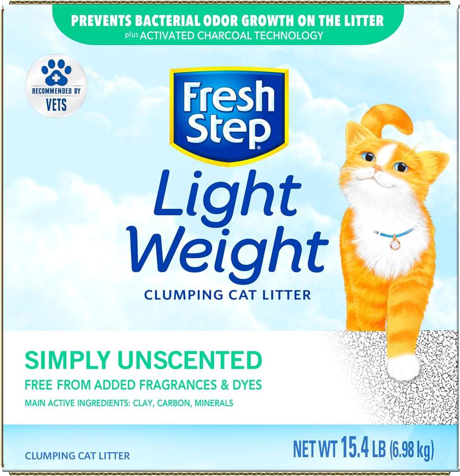Fresh Step Simply Unscented 15.4 lb Light Weight Clumping Litter Activated Charcoal Technology for Pet Cleaning & Bathing