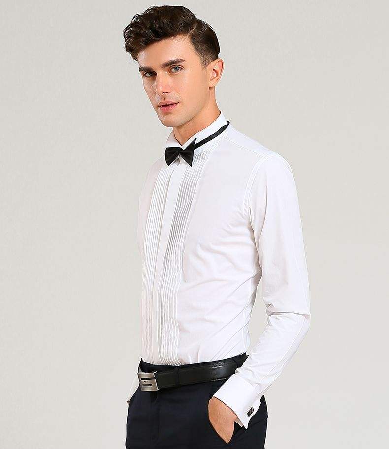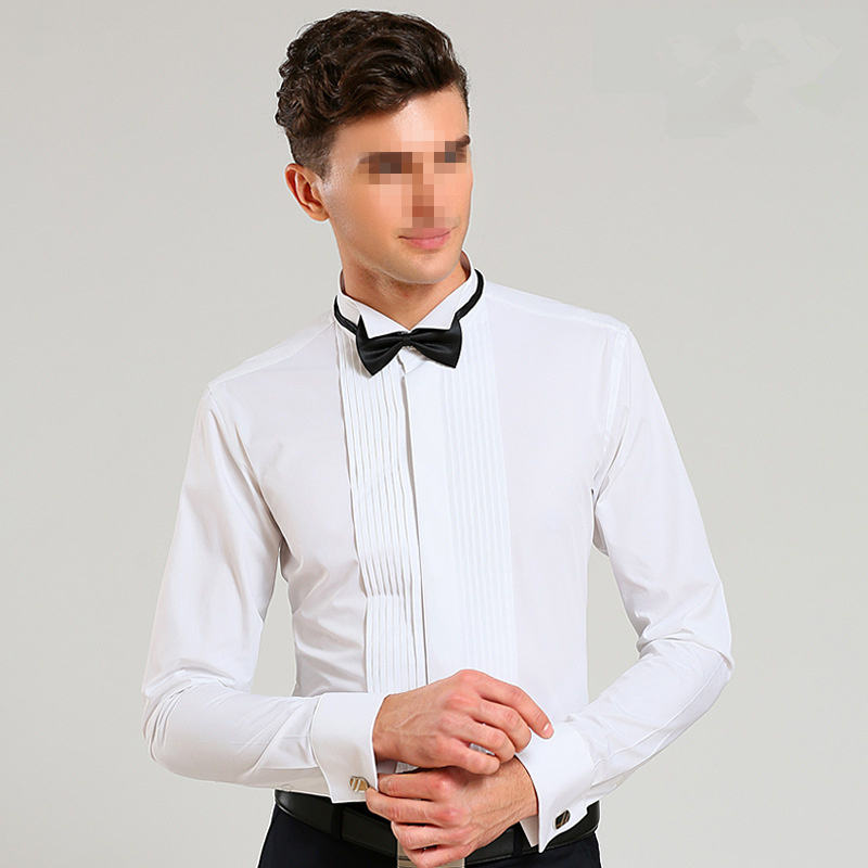 Frais Stock coton Polyester français chemise blanche hommes à manches longues chemise à l'étranger marié meilleur homme robe fête chemise mince