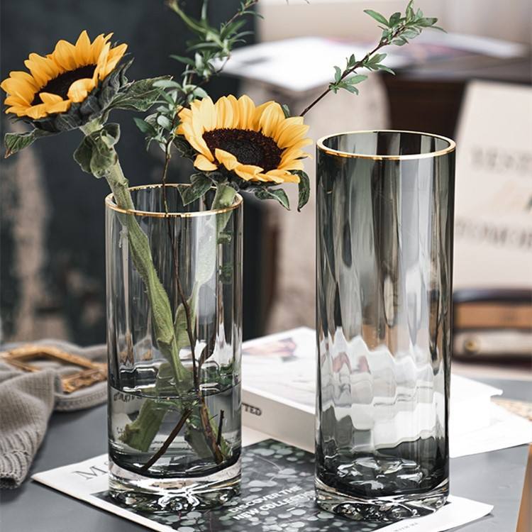 Vase en verre transparent de style frais idéal pour la décoration de fleurs de balcon à la maison Utilisation de terrarium à motif cylindrique