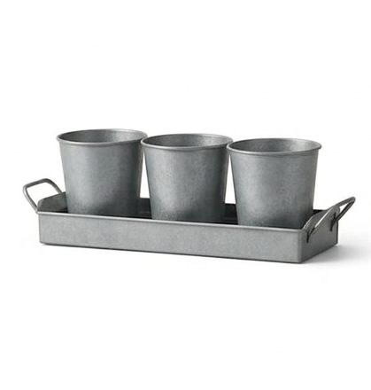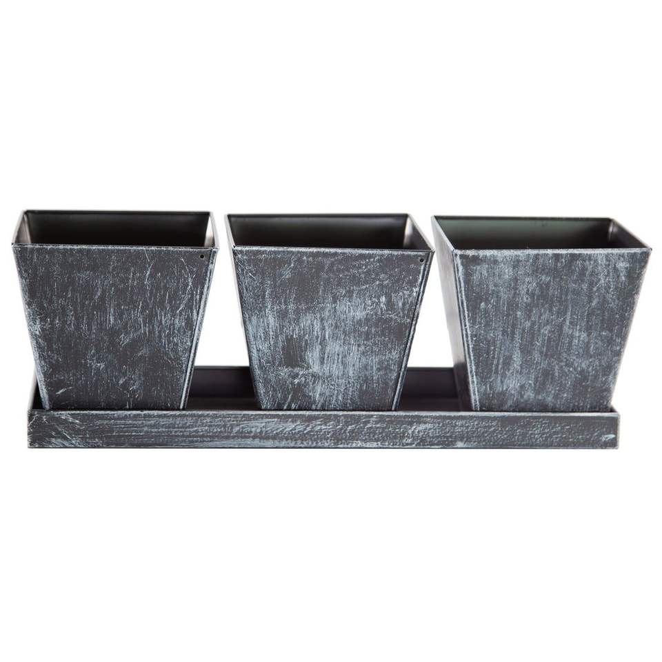 Ensemble de pots à fleurs en métal galvanisé rustique tendance avec plateau pour la décoration intérieure et extérieure du jardin, taille et forme personnalisées