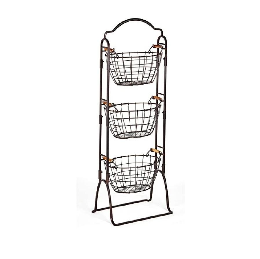 Fresh Trending Tier Fruit Basket Stand Metal Wire Fruit Basket Wood Base Kitchen Countertop Fruit Holder Customized Size Shape