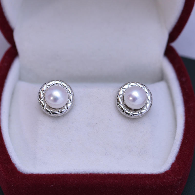 Freshwater 7-8mm White Strong Light Almost Flawless Pearls S925 Silver Triangle Bird's Nest Shaped Earrings