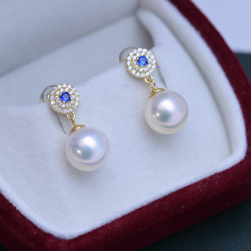 Boucles d'oreilles en perles rondes blanches d'eau douce de 9 à 10 mm pour femmes, or S925, lumière intense, défauts discrets, style simple, élégantes