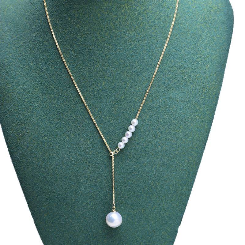 Freshwater Double Pearl Pendant Necklace with S925 Silver Chopin Clavicle Chain Strong Light Fine Flaws European Style