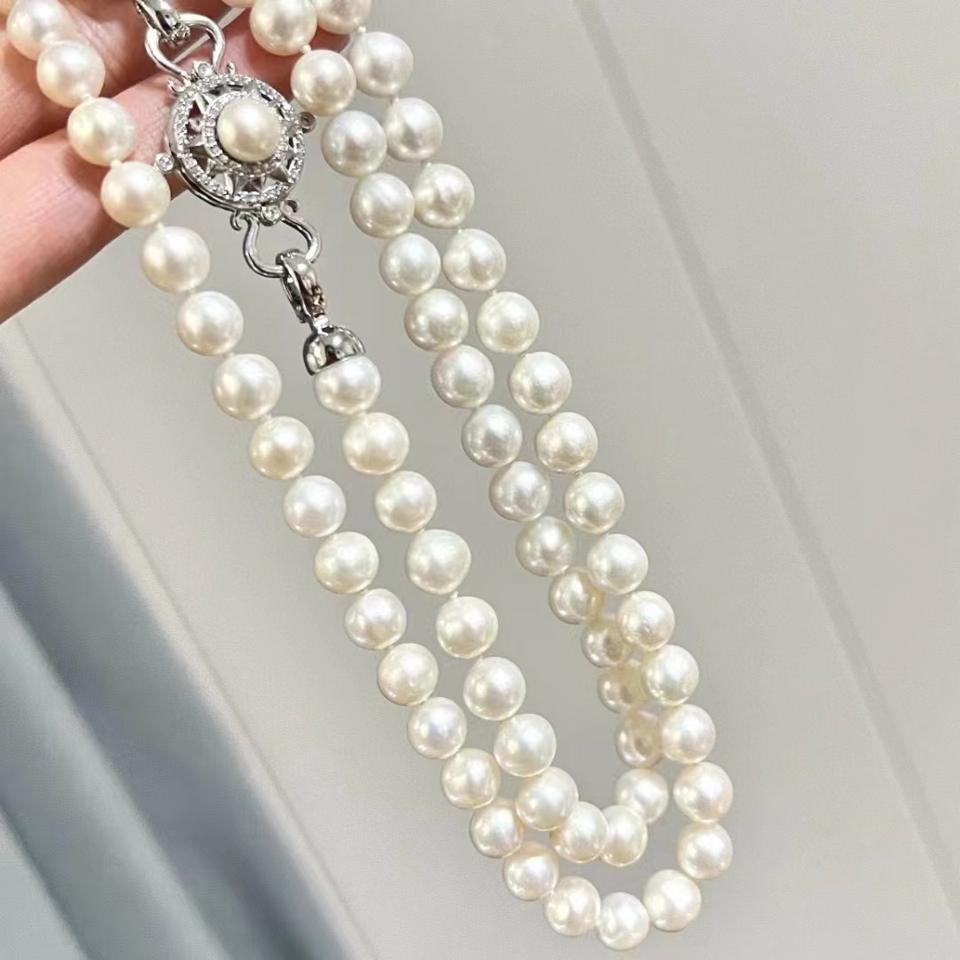 Freshwater Pearl Luxury Necklace with Laser Bead Strong Light Natural Road Connection Clavicle Chain Bean Necklace