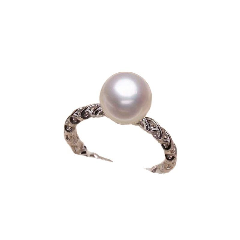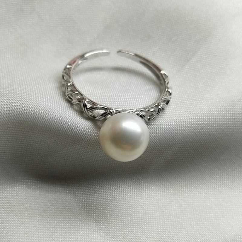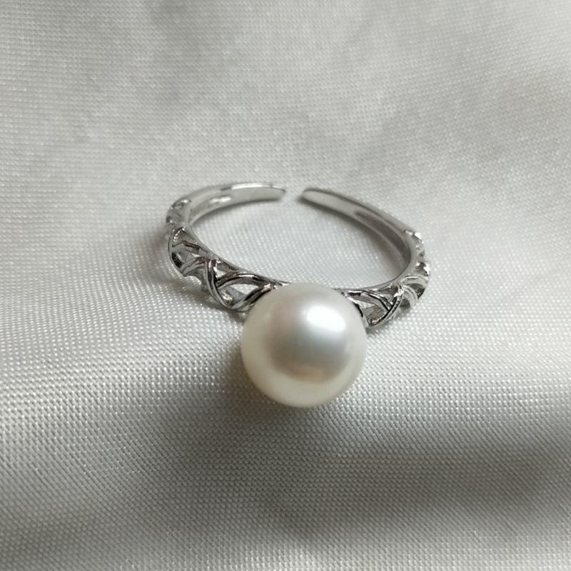 Bague en perle d'eau douce, argent 925, 8-9 mm, ronde brillante, impeccable, torsadée, simple, réglable