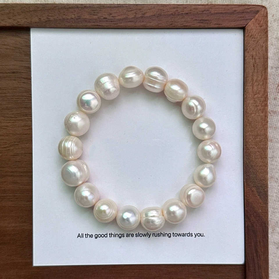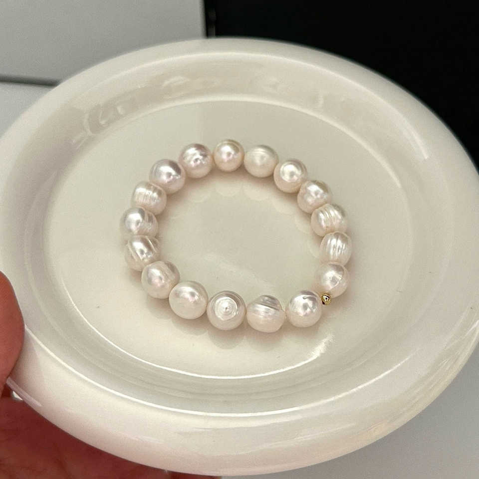 Bracelet en perles baroques plaquées cuivre sans pépins d'eau douce WENCHI, cordon élastique, 15-16 cm réglable, 30g