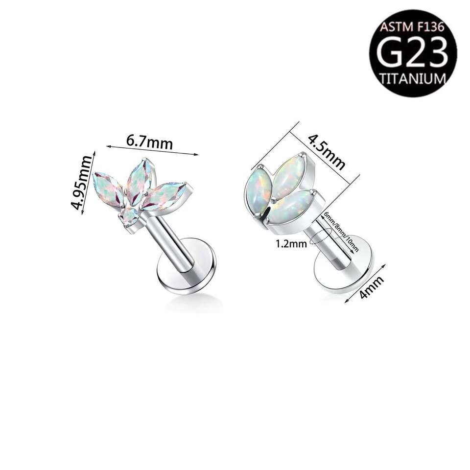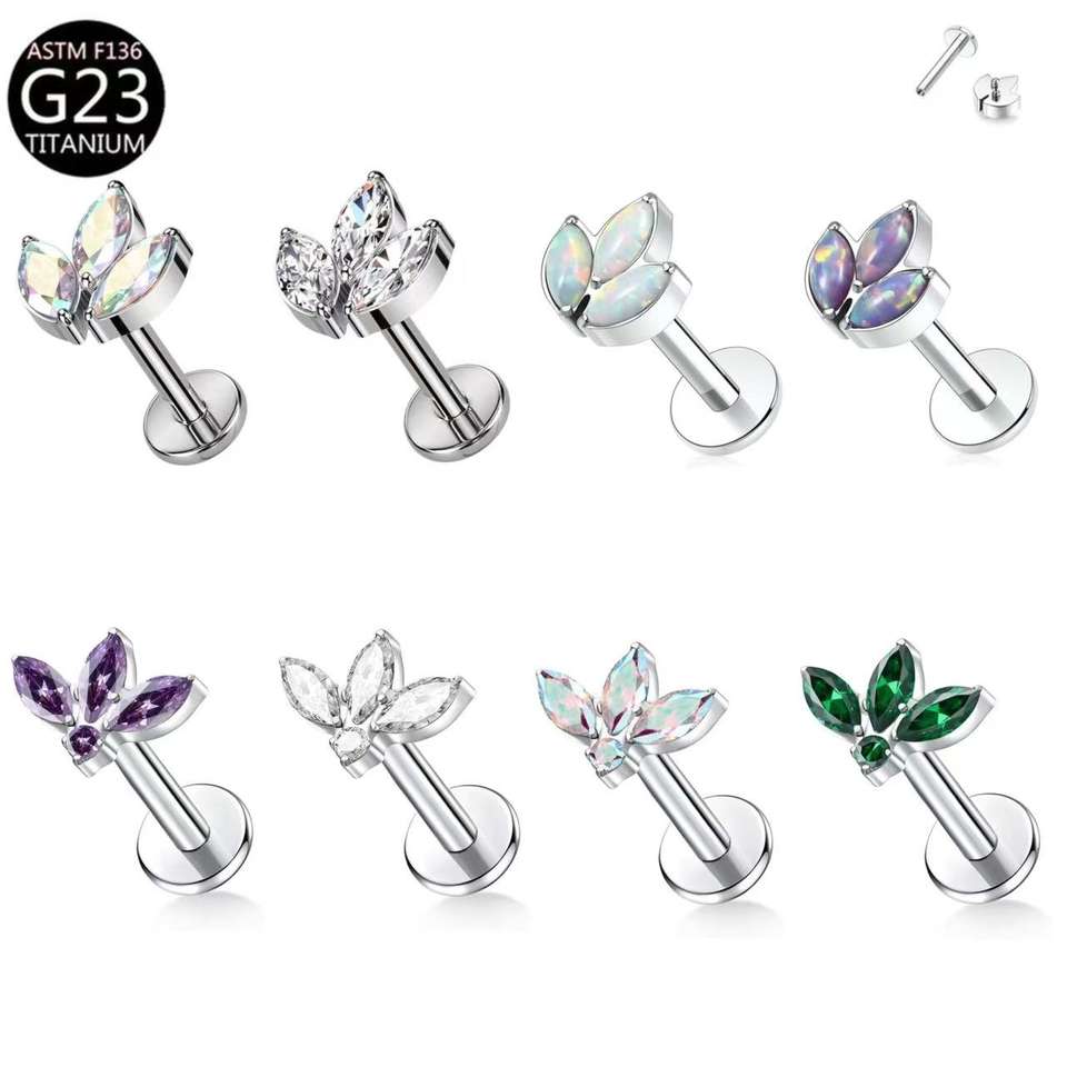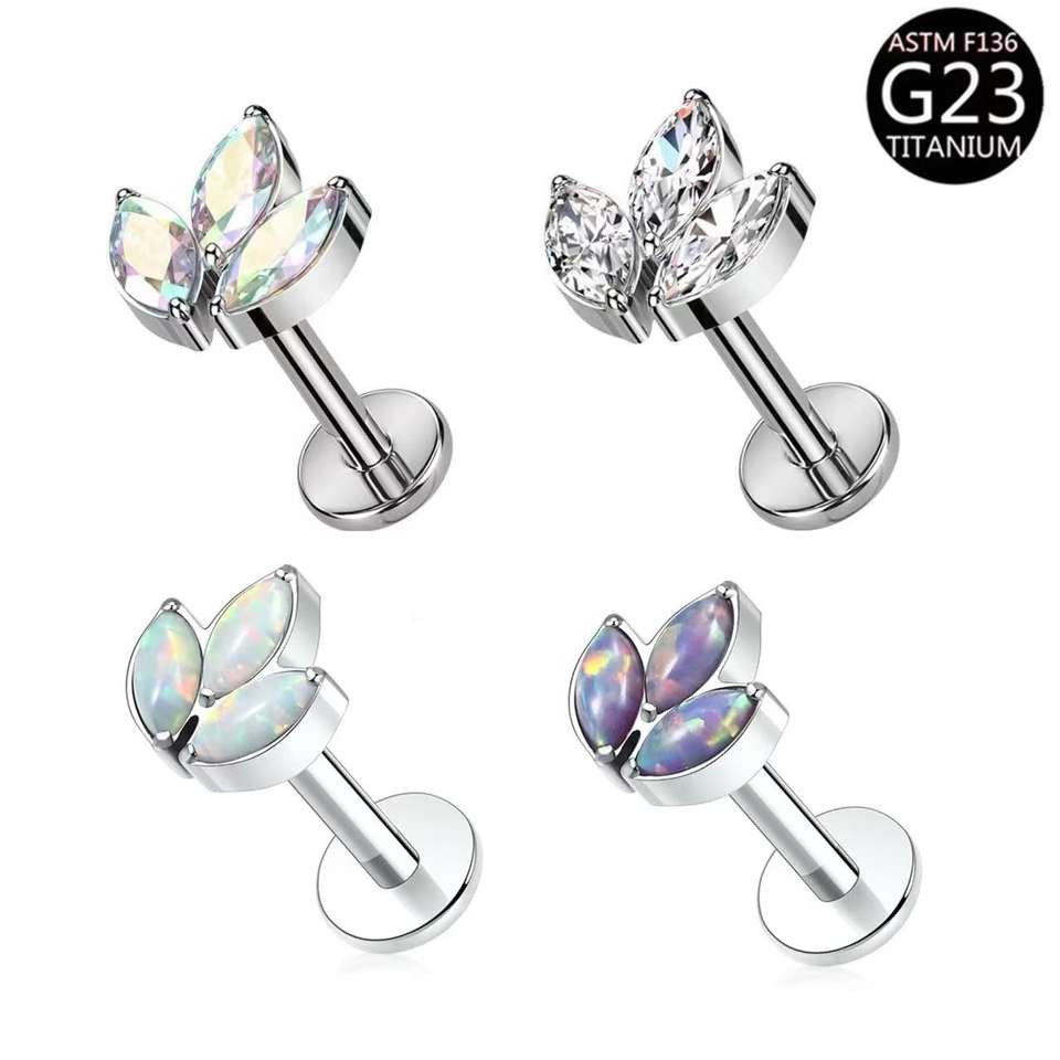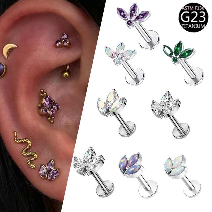 Freya ASTM-F136 Titane Zircon – Clou d'oreille pour cartilage, Labret tendance à dos plat, Bijou de piercing corporel pour femme