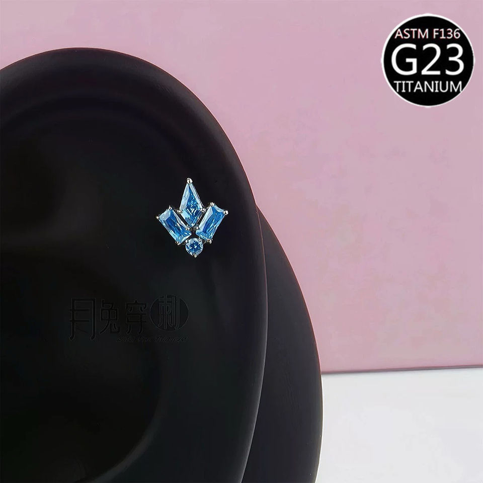 Piercing d'oreille Freya en Titane ASTM-F136 avec Zircon en forme de feuille d'érable, Labret de mode à filetage interne, Bijoux de piercing corporel
