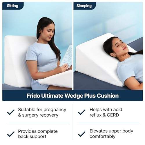 Oreiller Frido Ultimate Wedge Plus avec housse en velours et rembourrage en mousse | Soutien dorsal pour soulager le reflux acide | Conception amovible et lavable