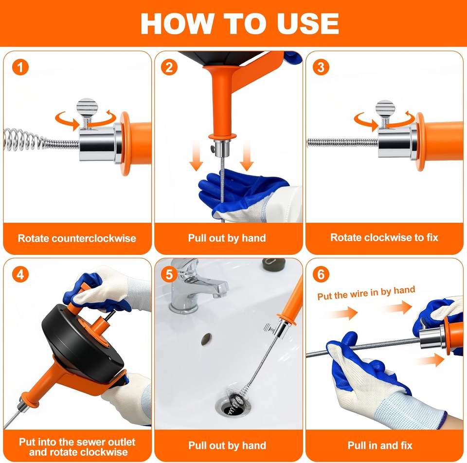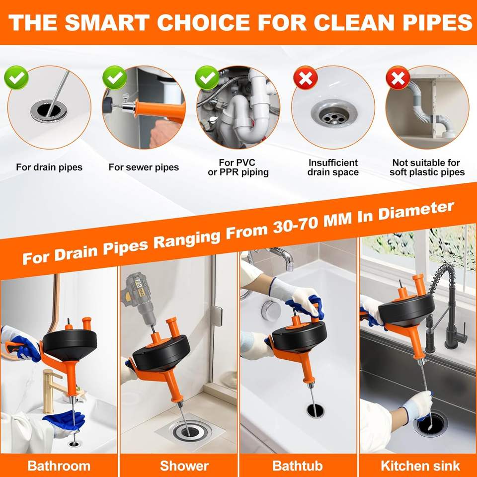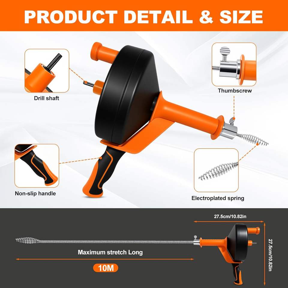 Spirale de nettoyage de canalisations Friendly Pipe Cleaning 10 m 13 m pour éviers de cuisine et de salle de bain, emballage pour vente par correspondance