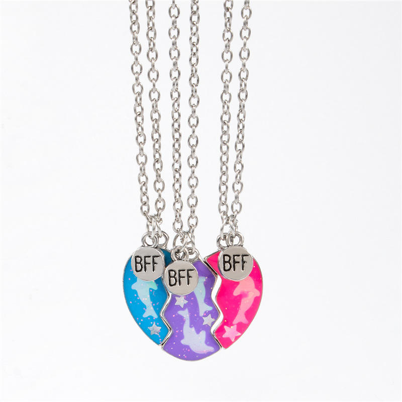 Collier d'amitié meilleur ami collier pour 3 filles magnétique correspondant coeur pendentif BFF dauphin colliers