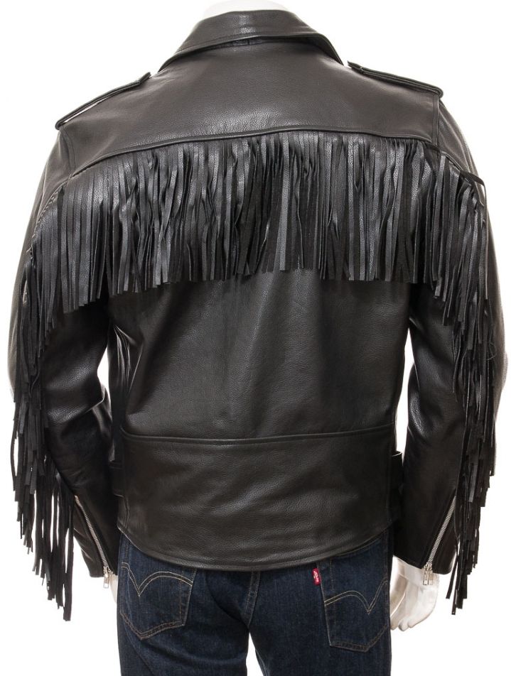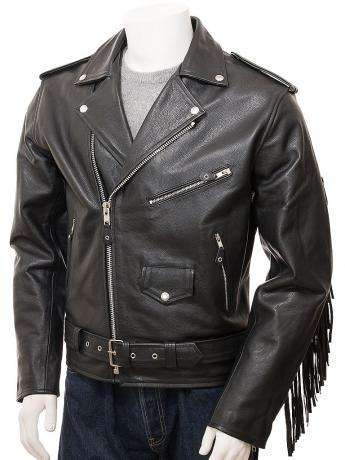 Classique Brando hiver moto hommes peau de mouton veste en cuir col montant haute rue Style frange avant Logo