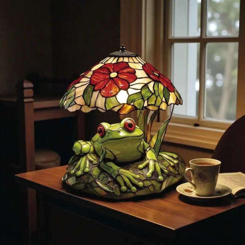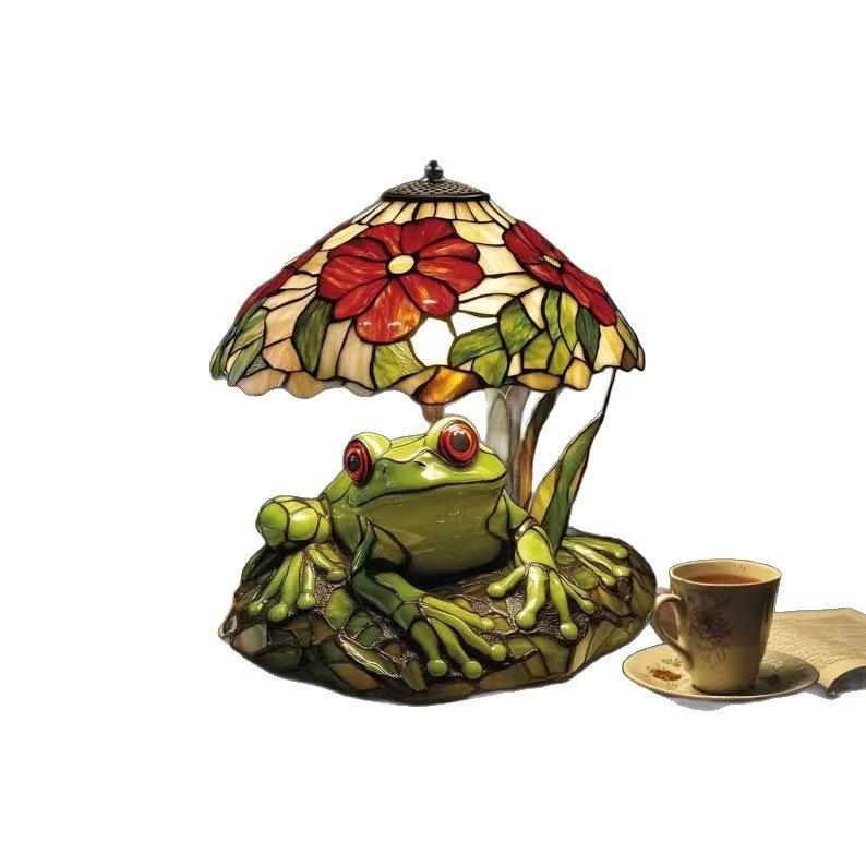 Lampe de table en verre teinté grenouille et fleur, ampoule LED E26, commande par interrupteur, décoration animale en résine, veilleuse pour chambre et salon