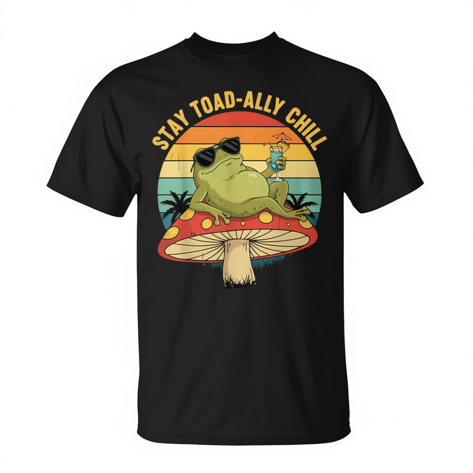 T-shirt Frog Stay Toadally Chill avec motif de crapaud rétro sur champignon