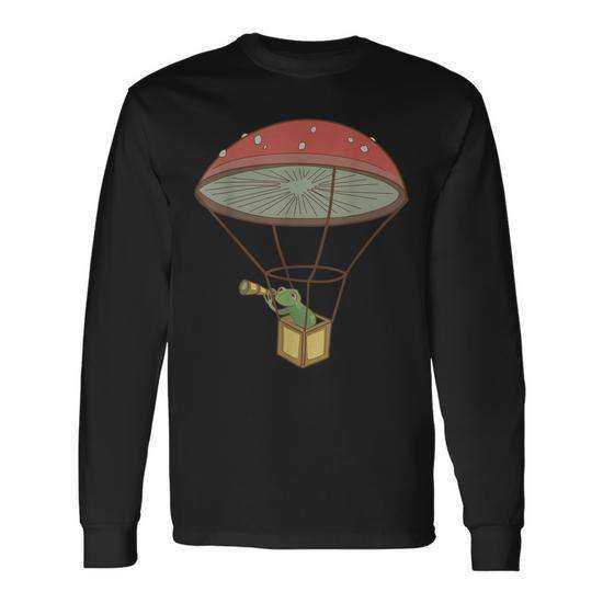 Frog With Toadstool Hot Air Balloon Long Sleeve T-Shirt Farmcore Cottagecore Design