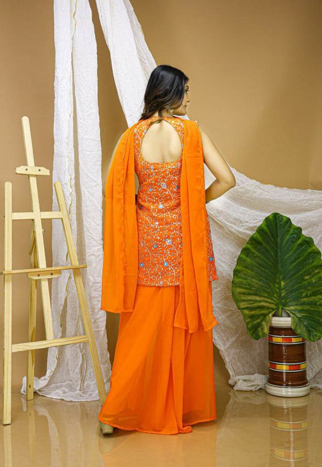 Ensemble Salwar Kameez réversible trois pièces en tissu Faux Georgette multicolore avec broderie avant et arrière et dupatta assortie pour les fêtes