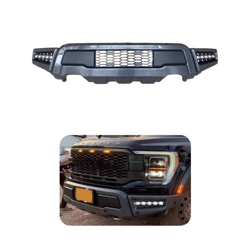 Barre avant avec lumière pour Ford F150 Raptor 2022 Musixia pare-chocs avant en acier noir 4x4 pick-up tout-terrain avec pièces de support de treuil