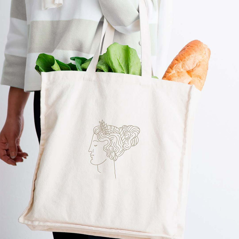 Sac à bandoulière en toile beige avec poignée large, motif géométrique, impression de logo personnalisée sur le côté inférieur, couleur attrayante
