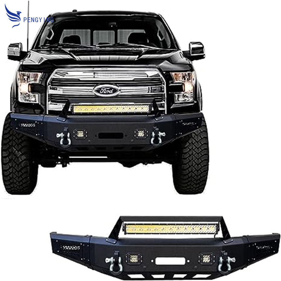 Pare-chocs avant compatible avec Ford F150 2015-2016-2017 (à l'exception du Raptor) avec plaque de treuil et feux LED