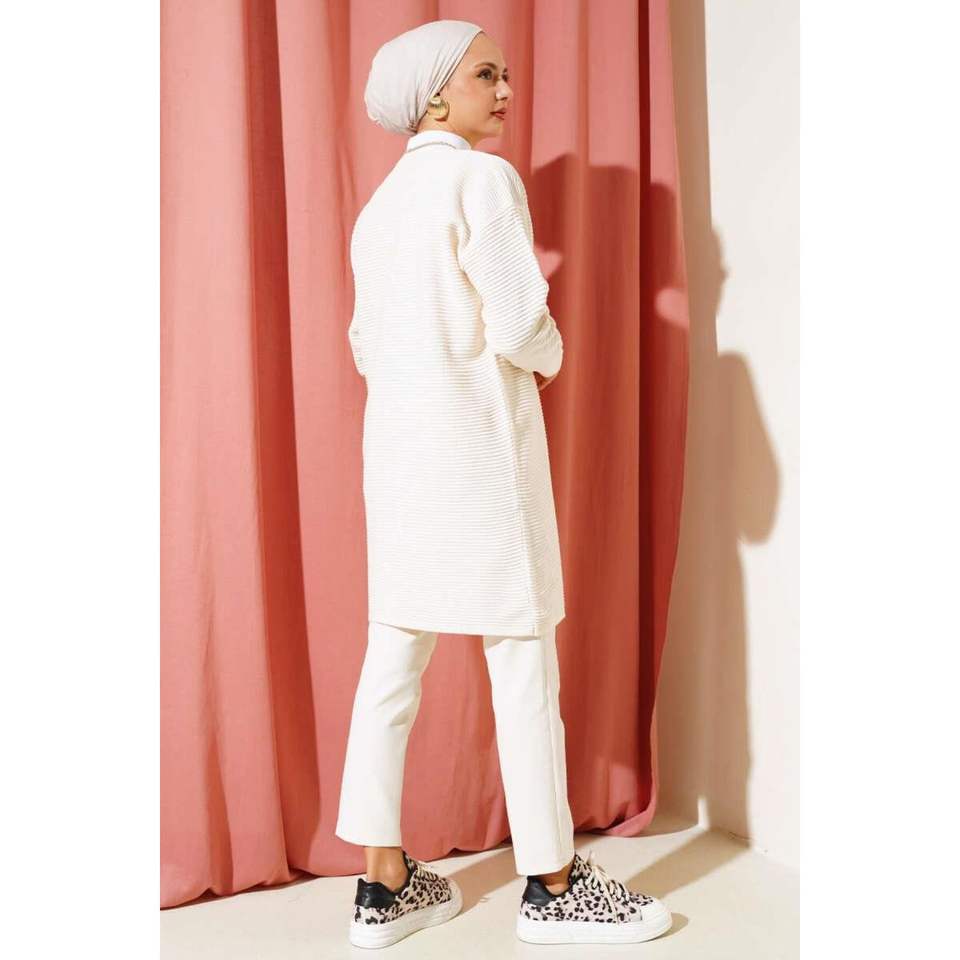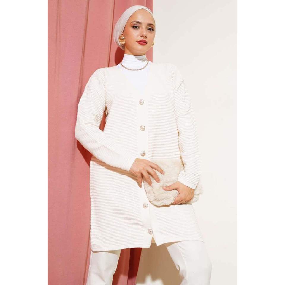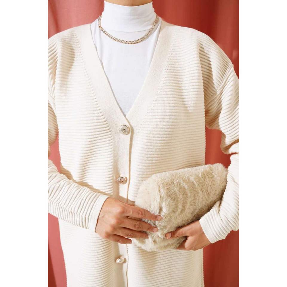 Cardigan en maille côtelé horizontal boutonné sur le devant Beige