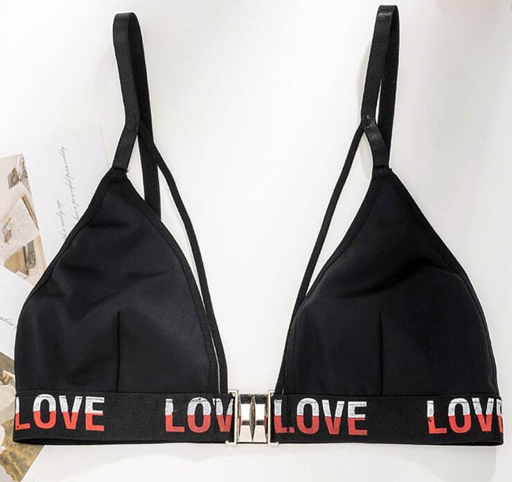 Front Closure Bra Women's BH Letter Push-Up Bra Deep V-shaped Triangle Cup Non-Steel Ring Bra for Plus Size