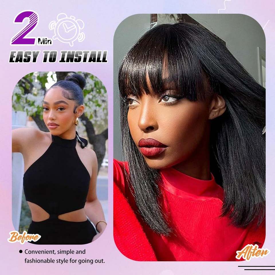 Perruque bob en dentelle frontale complète, fabriquée à la machine, avec dentelle HD, densité 210%, lisse, sans colle, 4x1, cheveux humains, raie naturelle